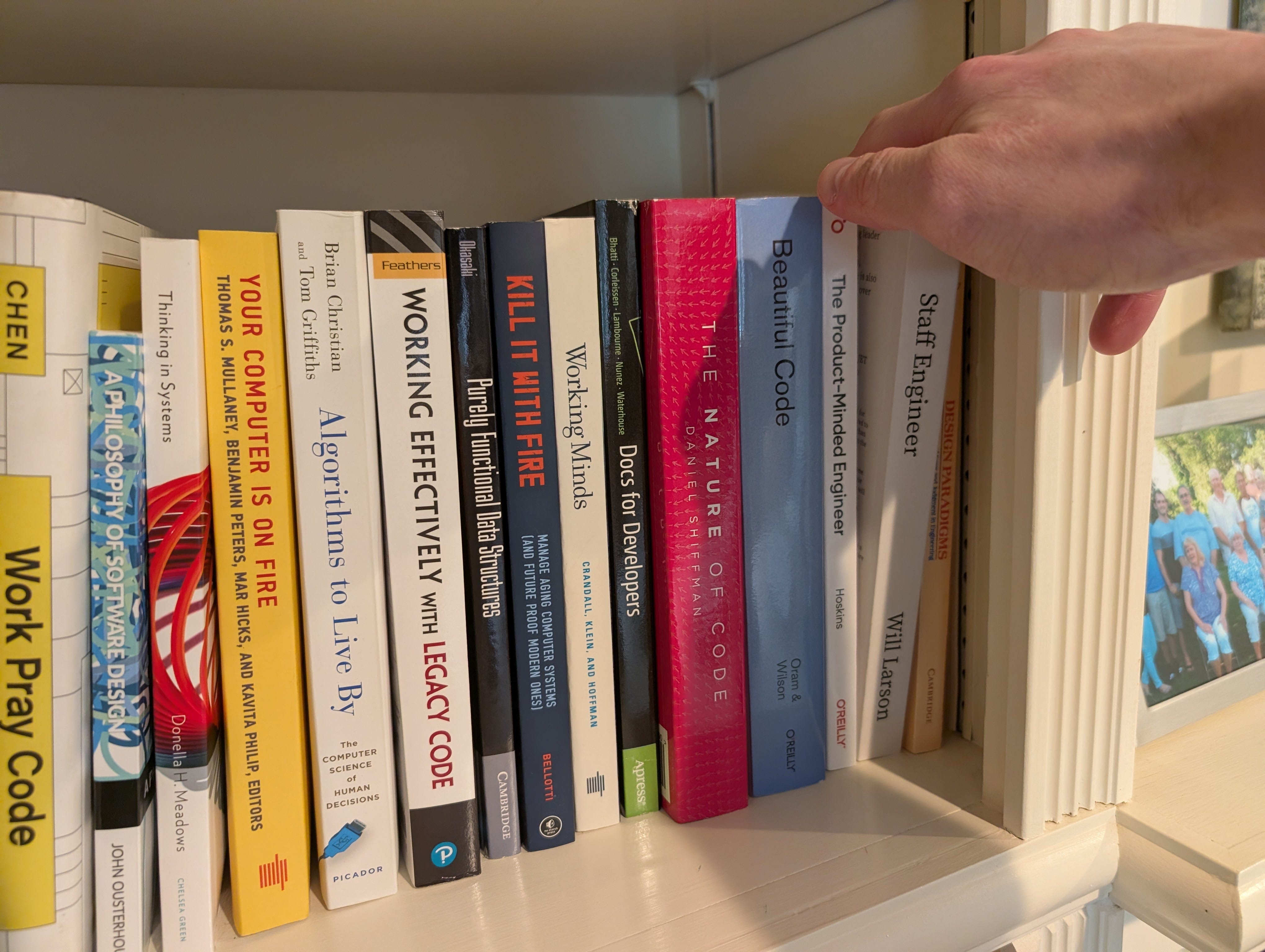 My shelves are stuffed with books like Staff Engineer: Leadership beyond the management track by Will Larson and The Product-Minded Engineer by Drew Hoskins, and none of them tell you how you should be writing more code.